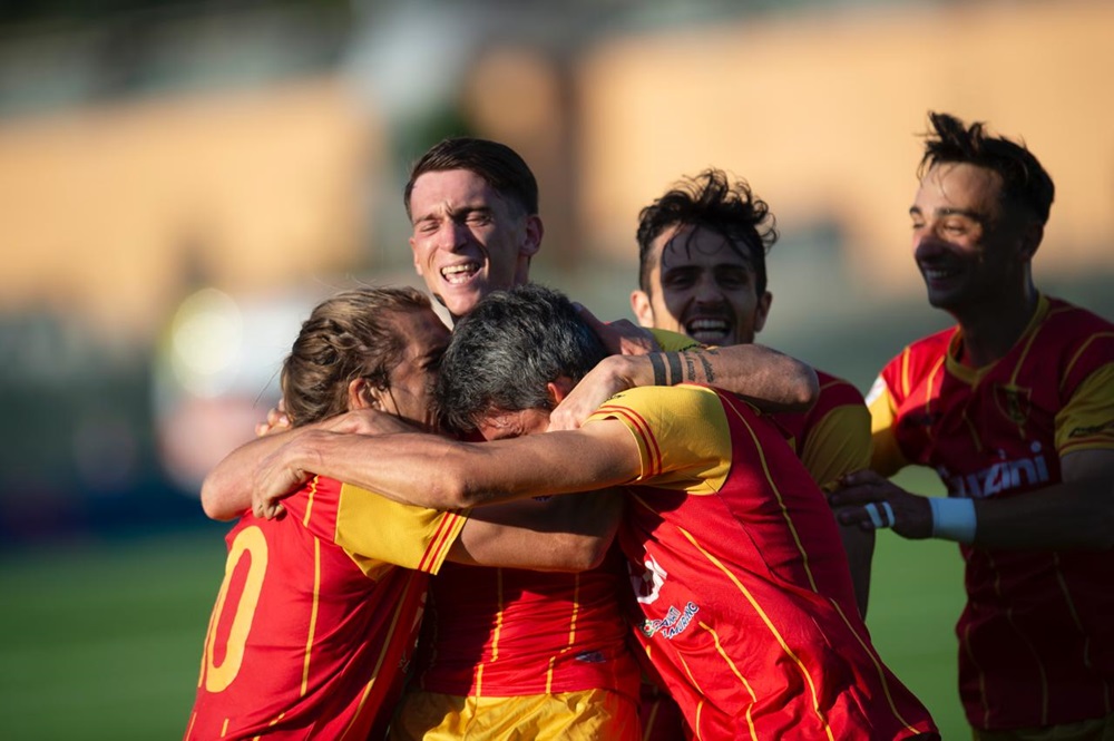 La legge del Tubaldi vale anche nei play out. La Recanatese batte 1 a 0 la Vis Pesaro e comincia con il piede giusto lo spareggio che vale la serie C. I giallo rossi sfruttano l’onda l’unga degli ultimi risultati casalinghi (quattro successi e un pareggio) confezionando un bottino importante che dovranno difendere tra sette giorni al Benelli di Pesaro. Chiaro che visto il residuo vantaggio è ancora tutto aperto, ma i ragazzi di mister Filippi avranno a disposizione due risultati su tre per centrare l’obiettivo. Non è stata una bella partita all’ombra del colle dove sono arrivati ben cinquecento tifosi dalla città di Rossini per incitare i loro beniamini. A segnare il gol della vittoria ci ha pensato Melchiorri che a quattro minuti dalla fine del primo tempo trova il guizzo vincente su bell’assist di Sbaffo. Lo stesso attaccante giallo rosso aveva creato la prima occasione della partita impegnando Neri con quest’ultimo che si è opposto anche al tentativo di Lipari. Poca cosa la Vis, tutta in una velenosissima punizione dal limite di Di Paola che è terminata sull’esterno della rete. La ripresa ha ricalcato più o meno l’andamento dei primi quarantacinque minuti di gioco con manovre tutt’altro che coinvolgenti vista l’alta posta in palio. Bravi comunque i due portieri quando sono stati chiamati in causa e precisamente su una conclusione di Neri e sull’ennesimo tentativo di Melchiorri. Nel finale si è fatto sentire anche il caldo che ha condizionato i ritmi di gioco e la lucidità dei ventidue in campo. Domenica prossima si replica al Benelli, sempre alle ore 18. La Recanatese parte con un piccolo ma sostanziale vantaggio ma alla Vis Pesaro basterà un successo con qualsiasi punteggio grazie al miglior piazzamento in classifica rispetto agli avversari. I play out restano apertissimi ma la Recanatese ora ci crede un po’ di più.