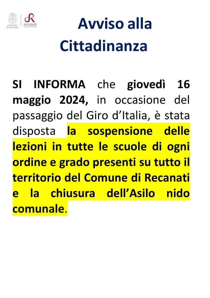 Allo stesso indirizzo al quale ti rivolgi in occasione delle chiusure scolastiche disposte in conseguenza delle allerte meteo della Protezione Civile o di altri eventi straordinari (visite del Presidente, del Pontefice, di personaggi illustri, processioni, cortei, manifestazioni autorizzate, minacce di attentati, etc.).