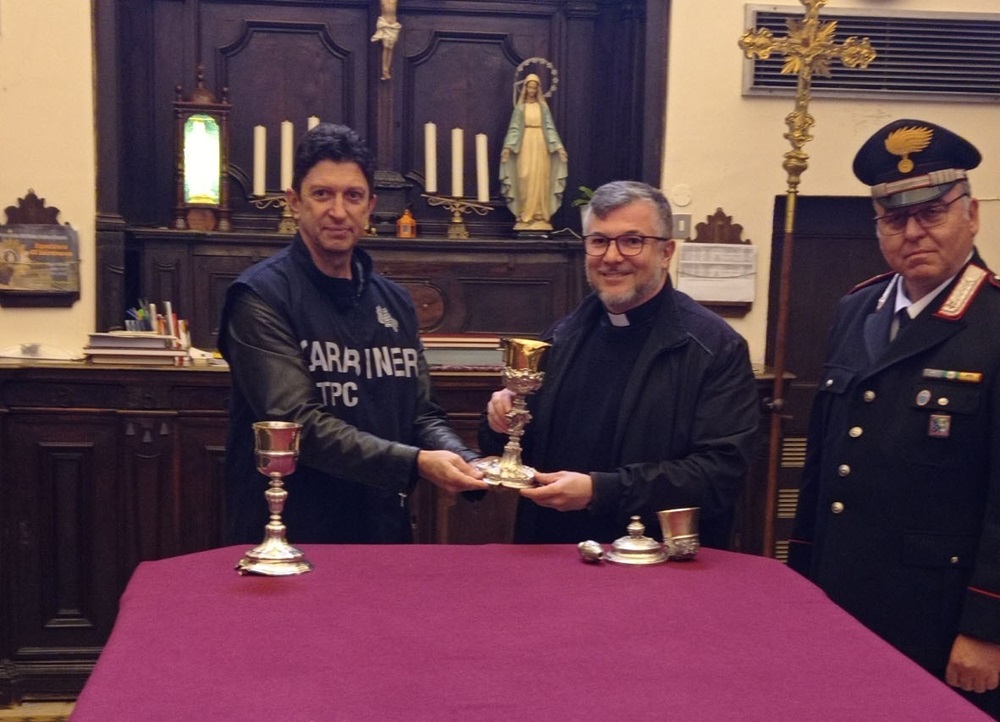 L’uomo, con precedenti specifici e già noto alle Forze dell’Ordine, nell’ambito dello specifico procedimento è stato ritenuto responsabile, nello specifico, di un furto commesso, all’interno della Chiesa di San Pietro Paolo e Donato di Corridonia, da cui avrebbe illecitamente asportato 3 calici in argento (di età compresa tra il XVIII e XX sec.). Secondo la ricostruzione dei fatti, l’indagato avrebbe (poco dopo il furto) venduto quegli stessi beni ad un esercente di materiali preziosi di Ancona, dichiarando ingannevolmente la lecita provenienza mediante false attestazioni.