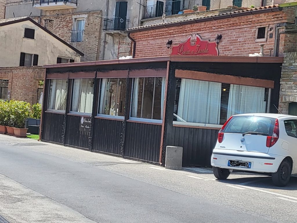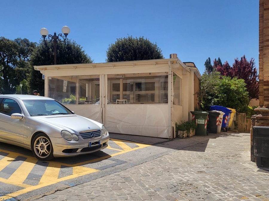 parcheggio davanti la sede della Curia per permettere alle auto di circumnavigare l’ampia pedana. Si fa presente, però, che il progetto del “salotto della città” dovrebbe vedersela con le autorizzazioni, le prescrizioni ed eventuali divieti della Sovrintendenza. Certo, ma viene anche evidenziato che altre strutture, nel frattempo realizzate, sono passate al vaglio dell’ente tutore dei beni architettonici e storici senza alcun problema. Ad esempio il bar sotto le Logge del Palazzo Comunale, che occupa un locale di proprietà comunale, ha costruito due dehors chiusi proprio sotto l’ottocentesco Palazzo garantendo, però, un servizio di ristorazione utilizzabile anche nelle giornate fredde e piovose. Altro dehors chiuso in pieno centro storico è quello che sorge davanti il quattrocentesco palazzo Venieri, oggi sede del Liceo Leopardi, a fianco dei giardini pubblici. Infine in via Carducci c’è un dehors che è il prolungamento all’aperto di un ristorante: eppure si trova proprio davanti lo storico palazzo Leoni, oggi ristrutturato, che ospitò Giosuè Carducci quando venne a Recanati, nel primo centenario della nascita di Giacomo Leopardi (1798-1898), all’Aula Magna del Comune. Però i dehors in piazza sarebbero un ostacolo insormontabile.