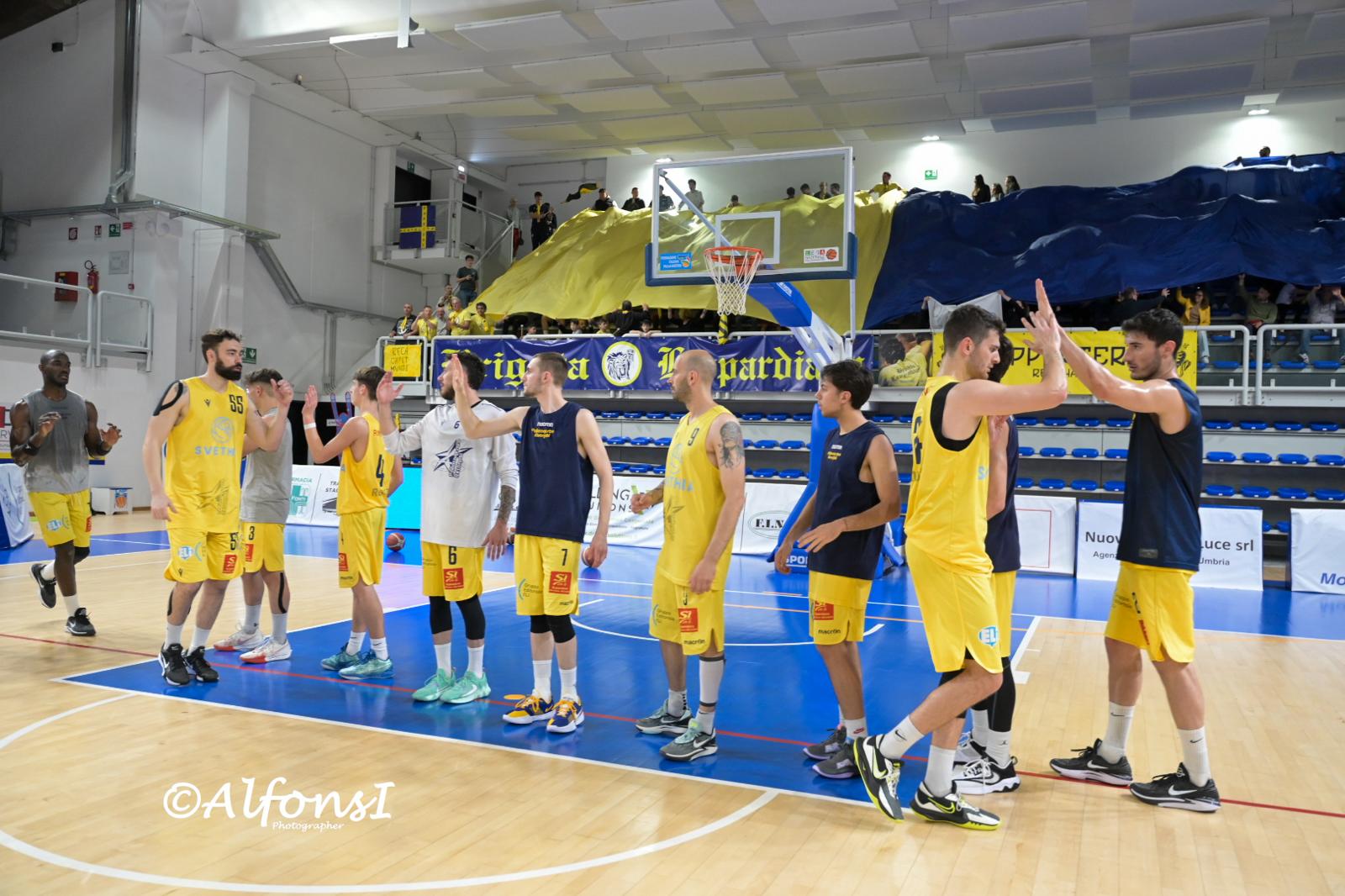 RECANATI – Pronto riscatto per la Svethia Recanati che smaltisce le scorie di gara 1 ed impatta la serie superando con autorità la Robur Osimo 86-56. Gara 2 è tutta un’altra musica con i leopardiani concentrati e bravi a trovare soluzioni in attacco oltre a quell’energia difensiva tanto mancata domenica. PalaCingolani-Pierini caldissimo che trascina una Svethia brava ad approcciare nel migliore dei modi al match: tripla di Sabbatini alla quale risponde un ispirato Cardellini, ancora Sabbatini che accende però Ferraro (9-11). Dalla panchina si alza Clementoni: in un lampo cinque punti dell’esterno leopardiano più la bomba di Pozzetti a scaldare ancora di più il già infuocato palas (18-13). I primi dieci giri di lancette dicono che la Svethia c’è (18-14). Sabbatini si conferma un fattore, Osimo inizia ad innervosirsi per alcune decisioni arbitrali e Pozzetti ne approfitta per lanciare la Svethia sul +9 (23-14). Reimundo è il lontano parente di quello di gara 1, due conclusioni pesanti di Andreani e Pozzetti mandano in visibilio i quasi 2000 leopardiani (32-16 a 3’55”). Ferraro e Tibs suonano la carica, parziale di 0-5 per una Robur che tenta di restare in partita. Un palleggio arresto e tiro di Marzullo fissa il punteggio sul 40-21 col quale si va all’intervallo. La pausa serve ad Osimo per schiarirsi le idee e provare a spostare l’inerzia fino a quel momento tutta dalla parte del Colle. Ad invertire il trand ci pensa Lasagna con 11 punti in un amen, Recanati regge il colpo grazie a Gurini e Reimundo, Dubois fino a quel momento in ombra riporta i senzatesta sul -9 (49-40). La Svethia però non si smarrisce, ancora Sabbatini ed un Clementoni su di giri per il nuovo +18 Recanati al termine della terza frazione (60-42). All’alba degli ultimi dieci minuti è Ferraro a tenere vive le speranze di rimonta, Pozzetti non è dello stesso avviso, Marzullo solido e prezioso sigla il 69-50 e la resistenza della Robur è piegata. Negli ultimi cinque minuti si pensa già a gara 3, coach Di Chiara può rotare tutti gli effettivi dando minuti anche al giovanissimo Kossowski che si toglie la soddisfazione di siglare cinque punti in una finale playoff. Finisce 86-56, Recanati è viva e vegeta.
