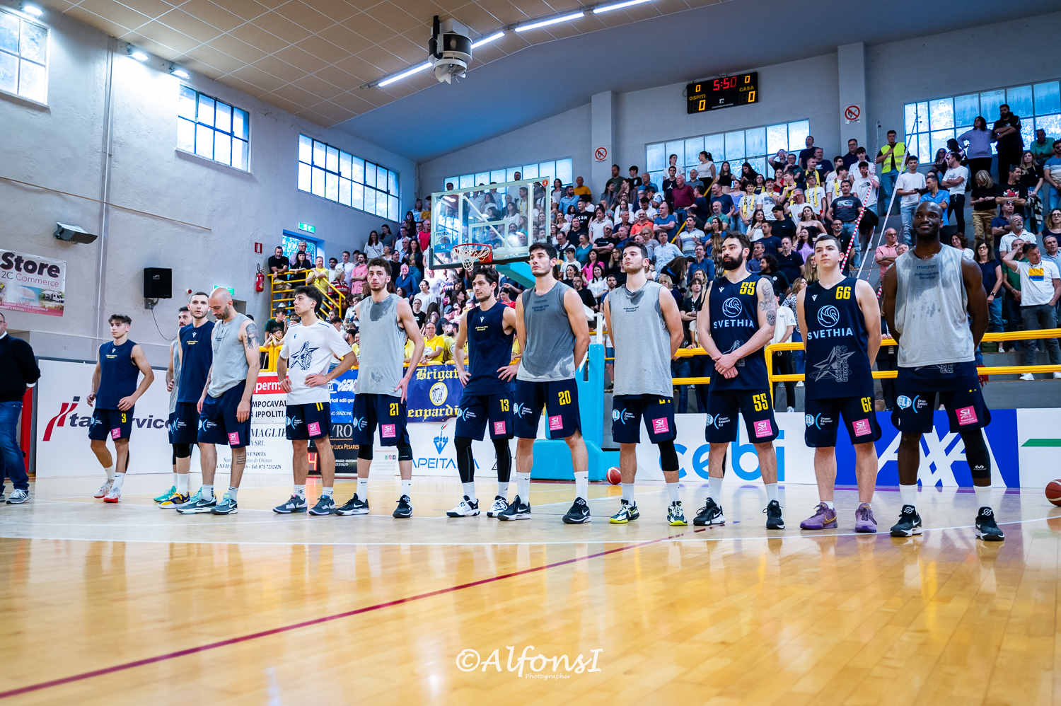 OSIMO – La Robur Osimo vince gara 3 della Finale Playoff e conduce ora 2-1 nella serie. Mercoledì sempre al PalaBellini il primo match point per gli uomini di coach Castracani. Per i gialloblu l’opportunità di impattare e rimandare ogni discorso finale alla “bella” di domenica 2 Giugno a Recanati. Gara vibrante e molto equilibrata fin dalla prima palla a due: apre la tripla di Sabbatini risponde Ferraro con un canestro più fallo, sotto le plance è duello tra Tibs e Reimundo mentre dalla panchina si alza un Clementoni subito caldo (tripla + aggiuntivo per il 13-16). Sul finire del quarto due triple di Carancini e Dubois spingono Osimo sul +2 (21-19). L’equilibrio non muta nei secondi dieci minuti: Clementoni è sempre sugli scudi, Osimo trova energia da Salamone e Lasagna con quest’ultimo che si esalta con un canestro e fallo (33-28). Recanati reagisce con Andreani ma è Ferraro a dare il massimo vantaggio ai suoi (37-31), Pozzetti e Resmini rilanciano la Svethia che chiude all’intervallo sotto di 3 (39-36). La pausa riconsegna al campo un Clementoni chirurgico, tripla del 39-39 prima di cinque punti consecutivi firmati dalla coppia Dubois-Cardellini. Ancora il numero 7 leopardiano a suonare la carica per i suoi: parziale di 0-8 che scalda gli oltre 200 appassionati giunti da Recanati, al 30′ è 51-52 Svethia. La sensazione è che si andrà punto a punto fino alla fine e così è: Tibs riporta Osimo avanti (53-52), Pozzetti risponde presente, due liberi del lungo numero 14 osimano fissano il punteggio sul 60-56. Andreani con un sottomano per il 62-60, in lunetta Dubois fa il suo dovere, Reimundo replica da sotto (64-62). Si entra nell’ultimo minuto, Clementoni a cronometro fermo prima pareggia poi sigla il 66-67 capitalizzando il fallo tecnico fischiato a Cardellini, dall’altra parte del campo fallo di Marzullo sul tiro da tre di Ferraro che fa due su tre e porta a casa il secondo punto per i suoi. Finisce 68-67 per la Robur, ora la Svethia mercoledì ha l’occasione per pareggiare la serie e trascinare Osimo alla “bella” di domenica a Recanati.