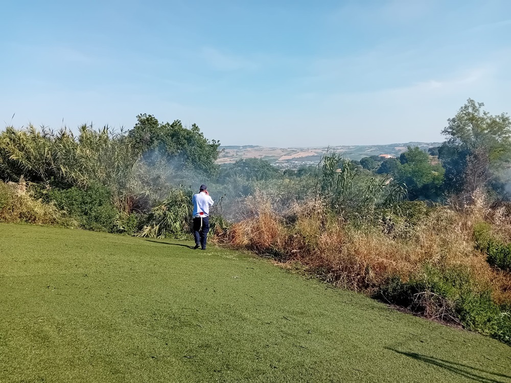 A fuoco, nel primo pomeriggio di oggi, le sterpaglie presenti in un campo che si trova lungo via Fratelli Farina, fra il Palazzetto dello Sport e le due strutture di calciotto dello stadio Tubaldi. La superfice interessata è di circa 2.000 metri quadrati e ha impegnato per lo spegnimento dell’incendio diversi mezzi dei Vigili del fuoco di Macerata e di Civitanova Marche, quest’ultimi intervenuti con un’autobotte.