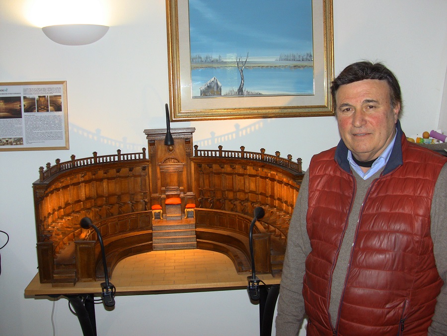 Prima faccio una foto dell’originale che voglio riprodurre e poi mi faccio un disegno da 1:10 e inizio a lavorare.” A dare l’ultimo tocco di rifinitura con lenzuola, tovaglie, pizzetti e quant’altro ci pensa la moglie Anna con ago, filo, ricamo, ferri o uncinetto. Tra le sue ultime opere è la riproduzione del coro ligneo della cattedrale di San Flaviano, un lavoro del ‘600 progettato ed eseguito dal falegname Agostilio Vangelisti di Ripatransone. “Dopo aver chiesto il permesso al parroco, ho fotografato e preso le misure ad ogni stato di avanzamento dei lavori, svolti in varie fasi e durato sei mesi. Ora ho appena ultimato l’altare della chiesa dei cappuccini. Per ora non ho niente altro in programma, mi lascio ispirare dalla curiosità, ultimamente mi attirano molto le cose particolarmente lavorate con capitelli, cornici, elementi decorativi vari”.