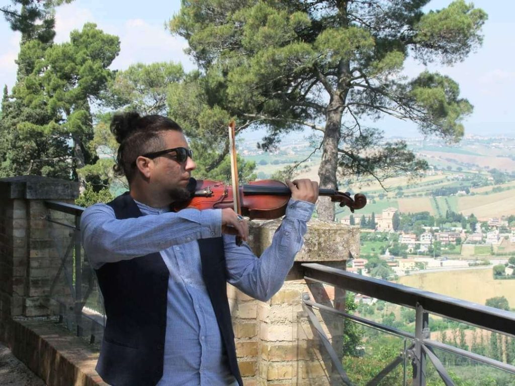 Si chiama Ernesto Quintero ed è violinista per passione e storia famigliare. È nato a Santa Clara (Cuba) ma da qualche anno vive a Recanati. Appena può va col suo violino nei luoghi più significativi della città e si esibisce per il piacere dei passanti. C’è chi lo ricorda quando, durante la prima ondata della pandemia, in pieno lockdown, suonava alla finestra allietando i vicini.