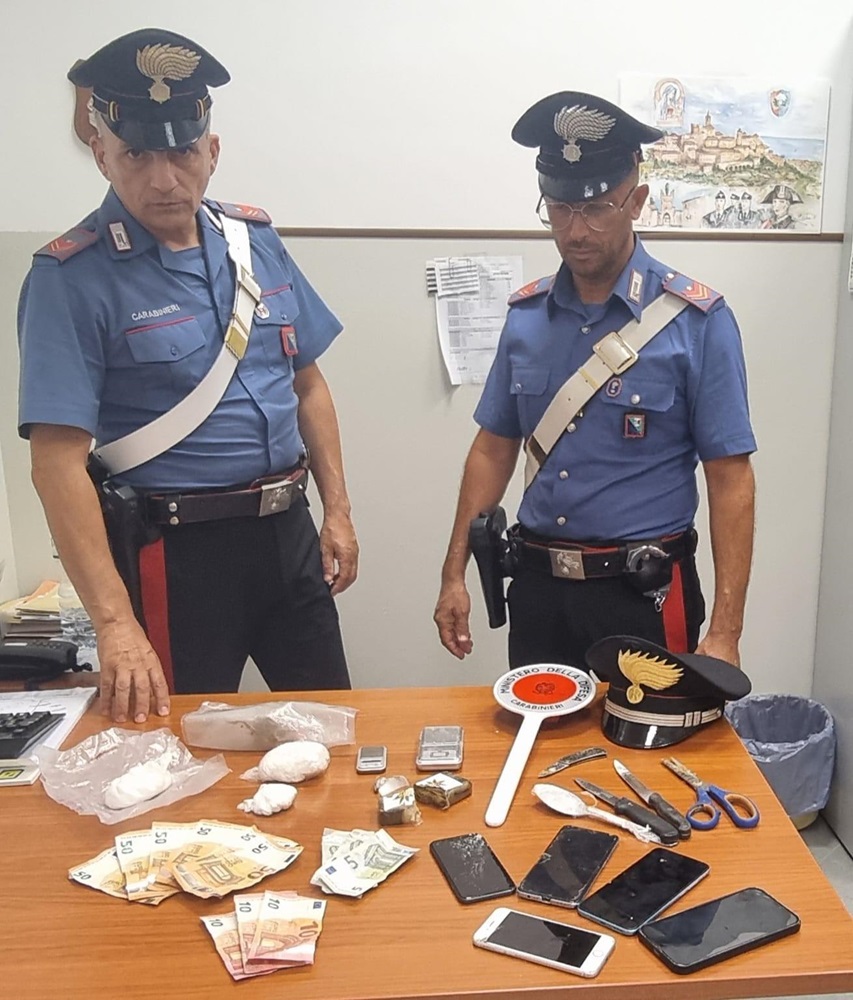 I Carabinieri, che già da tempo seguivano i movimenti dell’uomo, in quanto allertati da alcuni residenti che avevano notato un viavai sospetto di persone presso la sua abitazione, hanno fatto irruzione nella casa di Porto Recanati, ove il trentenne vive con l’anziana madre e, a seguito di perquisizione, hanno rinvenuto nella sua disponibilità circa 200 grammi di cocaina e 90 grammi di hashish, oltre a materiale vario per il confezionamento delle dosi, quali bilancini di precisione, coltellini per tagliare lo stupefacente e buste in cellophane. In suo possesso, inoltre, è stata rinvenuta la somma in contanti di 345 euro, in banconote di piccolo taglio, presumibile provento di spaccio, e un numero consistente di telefoni cellulari, utilizzati, con molta probabilità, per tenere i contatti con gli acquirenti, e che saranno analizzati dagli inquirenti, già all’opera per ricostruire la rete di spaccio gestita dall’uomo.