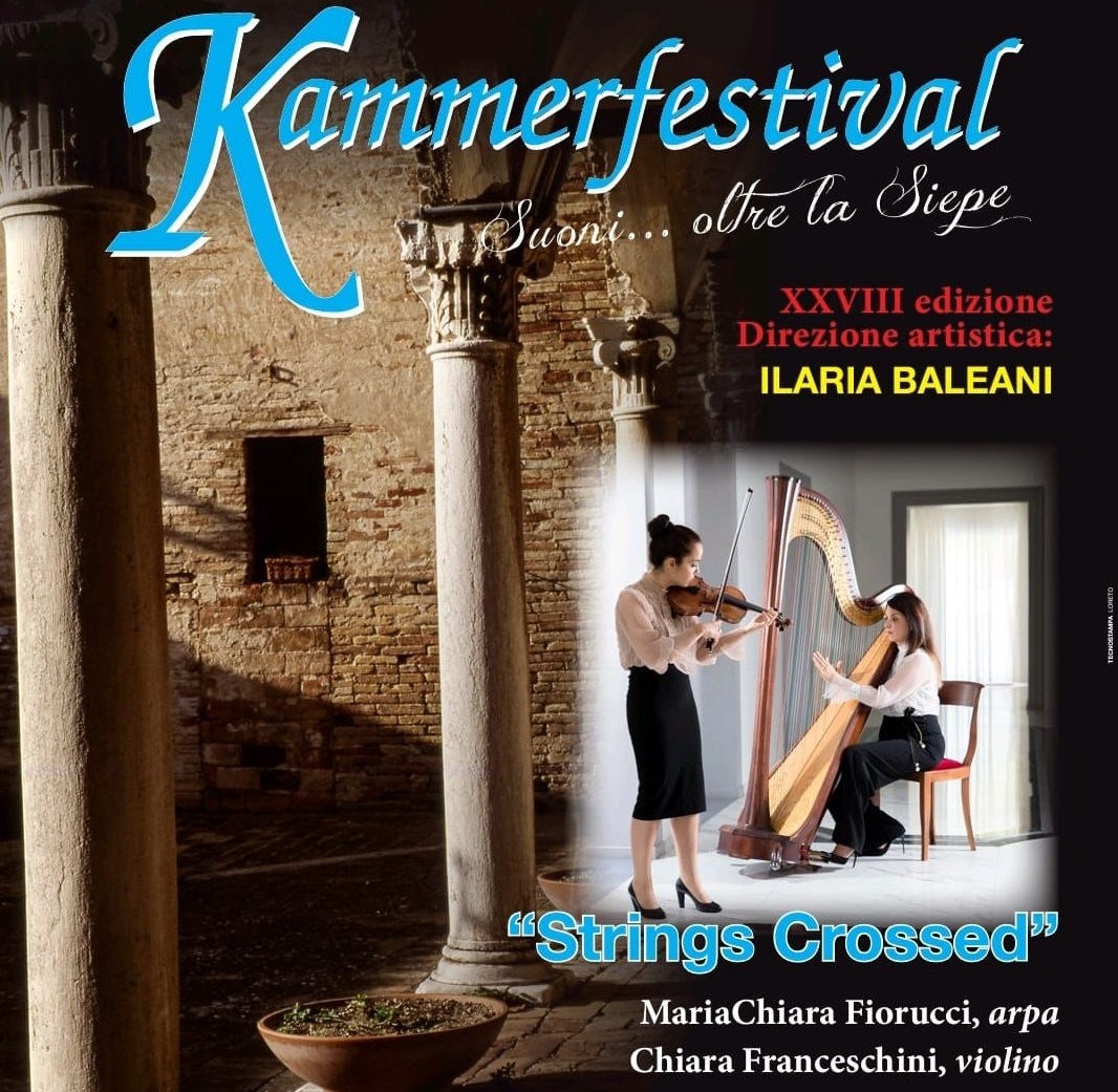 Kammerfestival: dopo il successo del concerto inaugurale con l’ensemble Namaste clarinetti e percussioni di Domenica 23 giugno al via il 2° appuntamento Giovedi 4 luglio ore 19.00 presso Cortile Palazzo Massucci, Via Roma. Un’atmosfera quasi celestiale caratterizza questo concerto del Duo String Crossed, formato da due artiste di calibro interanzionale Chiara Franceschini (violino) e MariaChiara Fiorucci (arpa) con un interessante programma di musica intitolato: “Le Fils des Étoiles”.