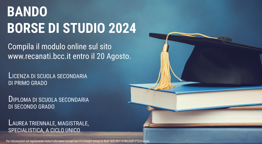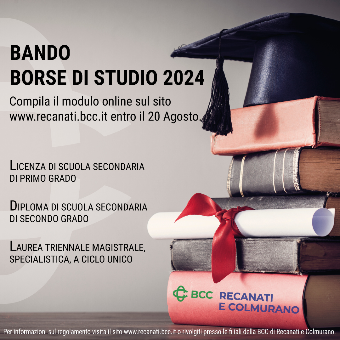 Si rinnova il bando per l’assegnazione delle borse di studio 2024, iniziativa promossa dalla BCC di Recanati e Colmurano, con l’obiettivo di sostenere i giovani studenti, promuovendo le eccellenze del territorio ed allo stesso tempo valorizzando la figura del Socio Giovane BCC.