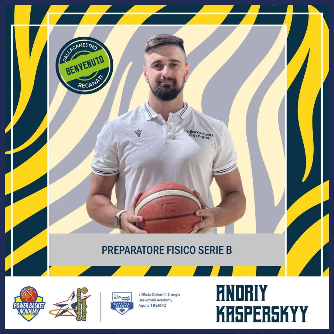 Si arricchisce di un nuovo tassello lo staff della Svethia 2024/2025. Andriy Kasperskyy 35 enne di Montecassiano è il nuovo preparatore fisico della prima squadra che disputerà il campionato di Serie B2. Nato a Kiev, laureando in Scienze Motorie, Andriy è anche Allenatore di Base FIP da 12 anni con esperienze in campionati giovanili U17 e U19 regionali e vice allenatore in serie D tra Pollenza e Macerata.