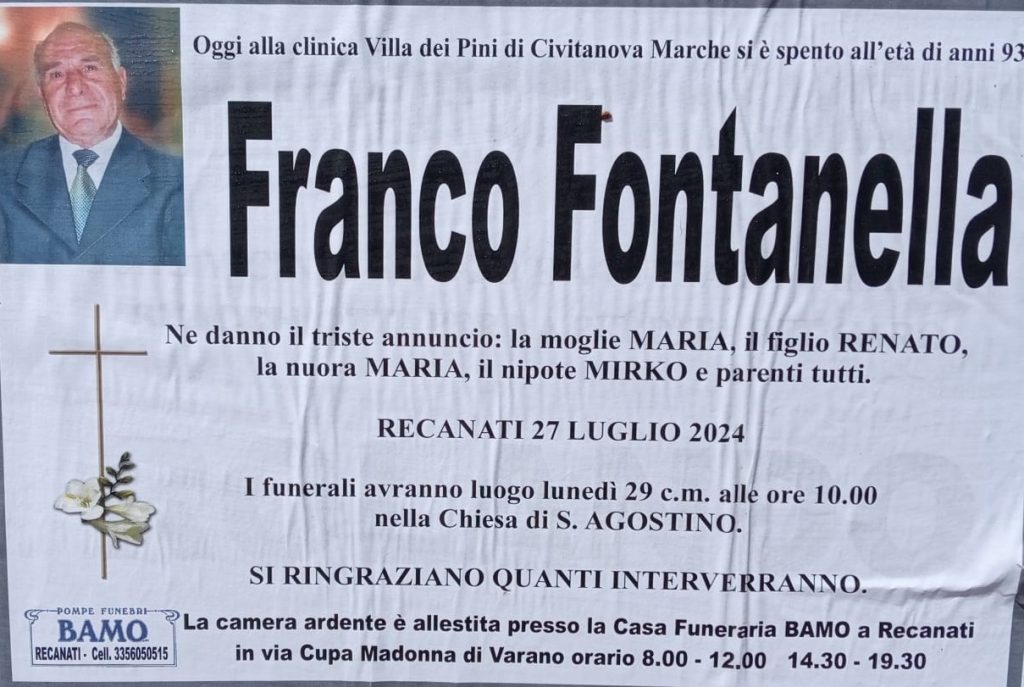 Sentite Condoglianze da un amico che a lavorato con lui all’Ospedale di Recanati Condoglianze a tutta la Fam.
