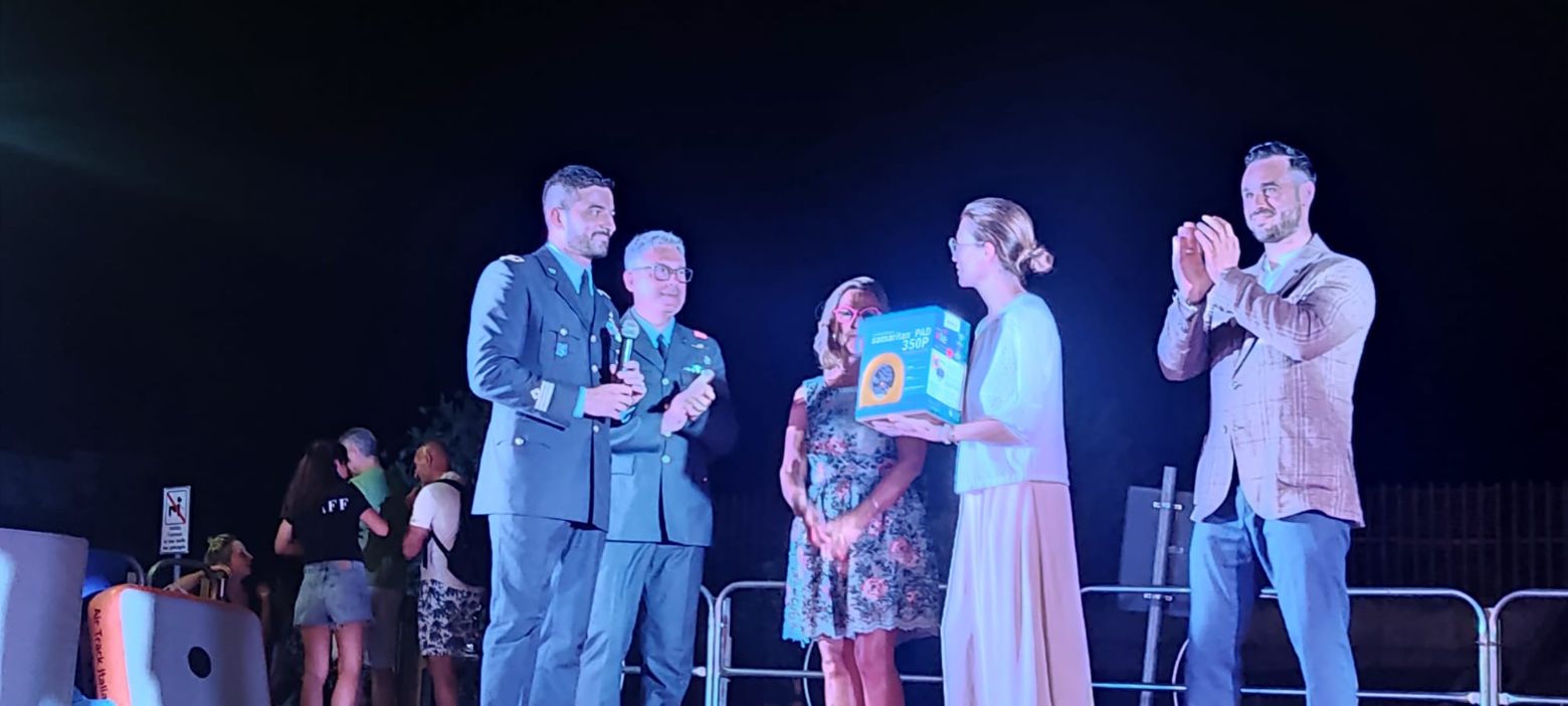 il capitano Speranza consegna il defibrillatore al Sindaco Tartabini