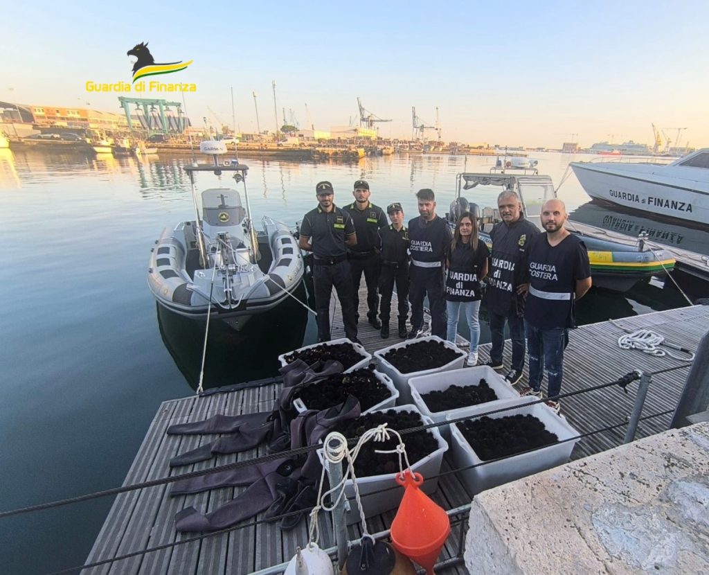 L’attività di contrasto alla pesca illegale è stata svolta nell’ambito di servizi predisposti, sia dal Reparto Operativo Aeronavale che dalla Guardia Costiera, per la vigilanza in mare e lungo il litorale, attraverso l’impiego di mezzi navali e pattuglie a terra. In particolare, durante la prima attività, i finanzieri impegnati in attività di pattugliamento in mare con una motovedetta, avvistavano un piccolo natante sospetto, che stava navigando a luci spente, con 3 individui a bordo in tuta subacquea, intenti alla pesca nelle acque antistanti la diga foranea del Cantiere Navale Fincantieri. L’equipaggio della motovedetta, dopo aver monitorato in maniera occulta il barchino durante le operazioni di pesca, allertava le pattuglie a terra, sia della Guardia di Finanza che della Guardia Costiera. Le pattuglie sopraggiunte sul luogo dell’approdo, individuavano i 3 soggetti intenti a sbarcare l’ingente quantitativo di ricci di mare appena pescati, per caricarli su di un’autovettura.