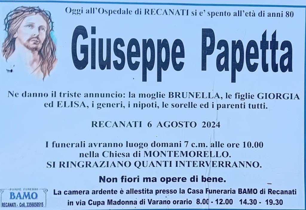 E’ morto Giuseppe Papetta