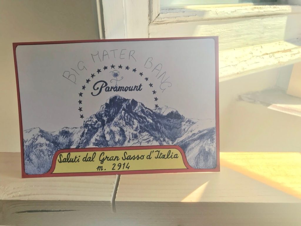 Giuseppe Stampone, artista di fama internazionale è nato in Francia ma vive tra Teramo, Bruxelles e Roma. È Docente di “Tecniche e tecnologie delle arti visive” presso L’Accademia di Belle Arti di Urbino. La sua produzione artistica passa dalle installazioni multimediali, ai video fino ai disegni realizzati con la penna Bic, diventati talmente famosi che la Bic gli ha dedicato un colore personale: il Blu Stampone. In una delle due cartoline per “Caro Alberto” ha immortalato il Gran Sasso nel logo di una famosissima casa di produzione cinematografica statunitense sovrastata da una scritta, creando la dimensione del sogno tipica del cinema in rapporto ad un senso di annullamento e impotenza. Nell’altra è rappresentata la tavola di un abbecedario su cui un tempo i bambini imparavano l’alfabeto. In questo vocabolario alternativo ha rappresentato una copertina del TIME con la famosissima opera di Maurizio Cattelan il cui autoritratto esce da un buco del pavimento, come fosse un ladro, meravigliato di trovarsi nelle sale di un museo. La scritta emigration, che per Cattelan non è propriamente un “trasferimento” fuori-luogo, rimanda ad una riflessione su un fenomeno sociale di portata estremamente rilevante. Stampone non è nuovo a questo tipo di operazioni: già nel 2011 con “Saluti da L’Aquila” aveva realizzato e spedito migliaia di cartoline con le immagini della “zona rossa” della città devastata dal terremoto ai responsabili delle istituzioni politiche nazionali e internazionali.