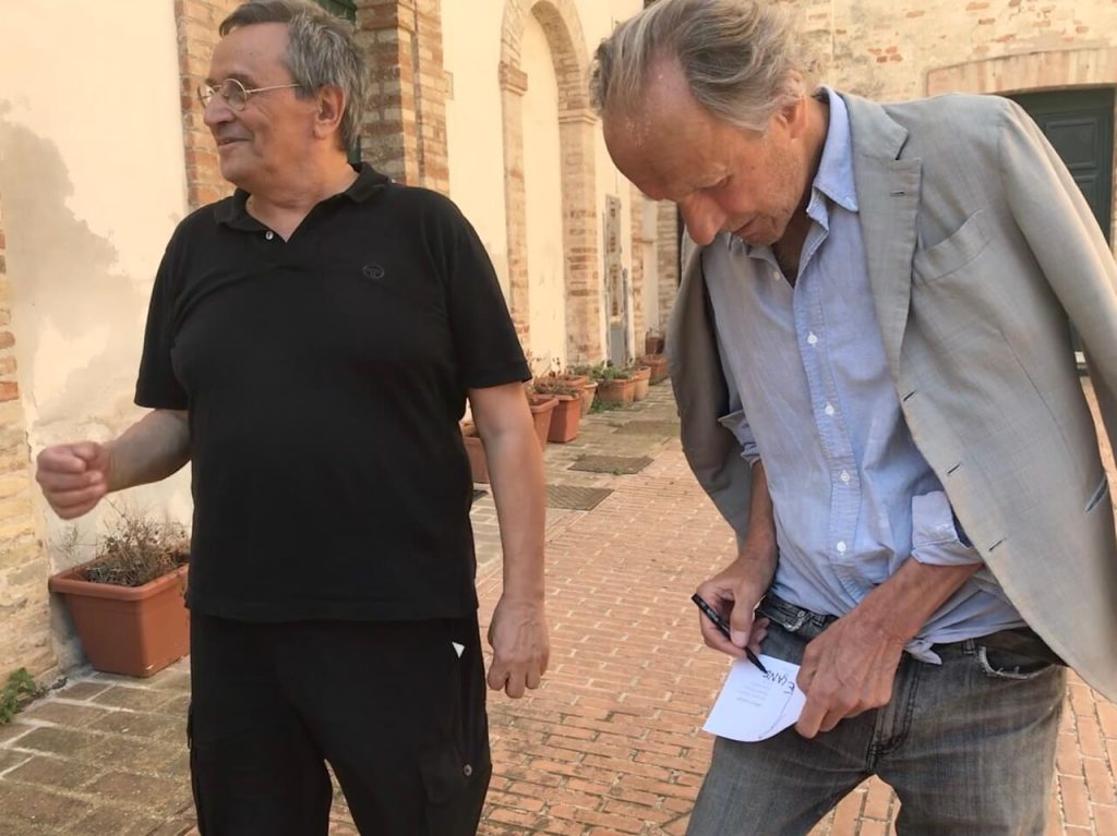 Enzo Cucchi, marchigiano di Morro d’Alba, artista di fama internazionale, è considerato il più visionario tra gli esponenti della Transavanguardia. Numerose sono le esposizioni in gallerie, musei e spazi culturali di tutto il mondo. A Recanati nel 2018 lo ricordiamo in mostra con l’artista recanatese Niba nell’allora Galleria Idill’io arte contemporanea di Pio Monti. Per “Caro Alberto” Il “poeta e mago” Enzo Cucchi, dopo aver apprezzato molto la mostra e lo spazio, ha lasciato il suo segno visionario e inconfondibile in una cartolina creata al momento.