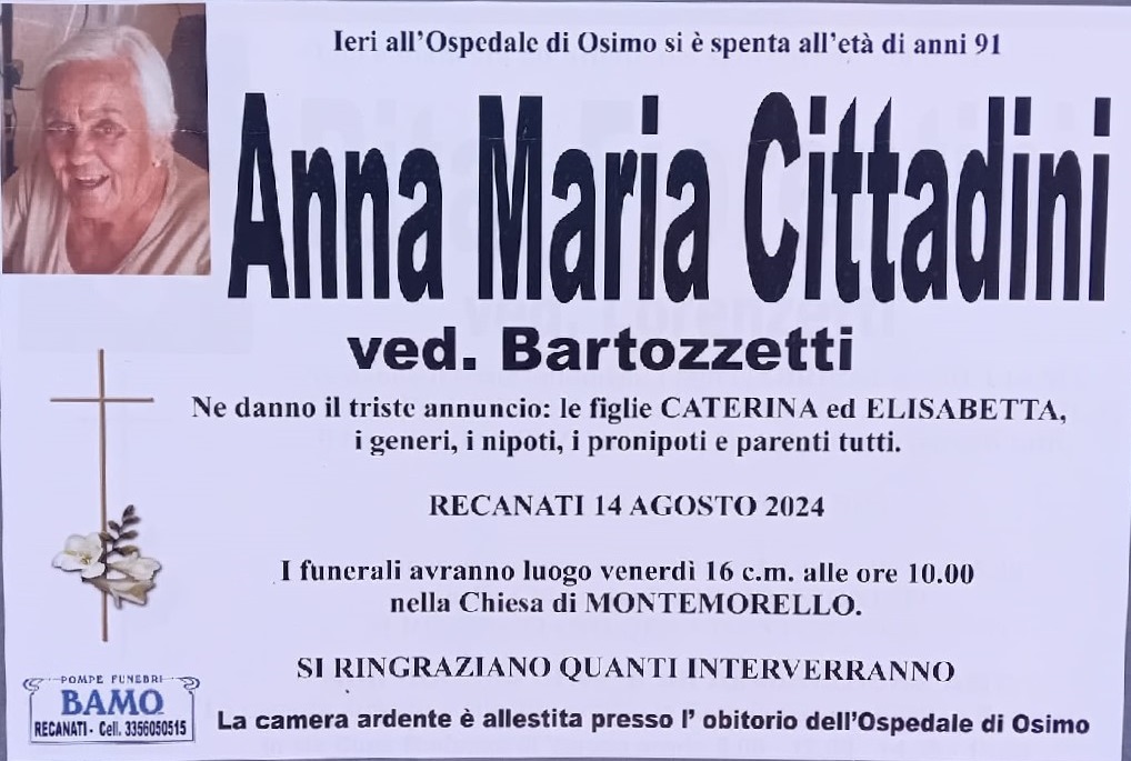 E’ morta Anna Maria Cittadini ved. Bartozzetti