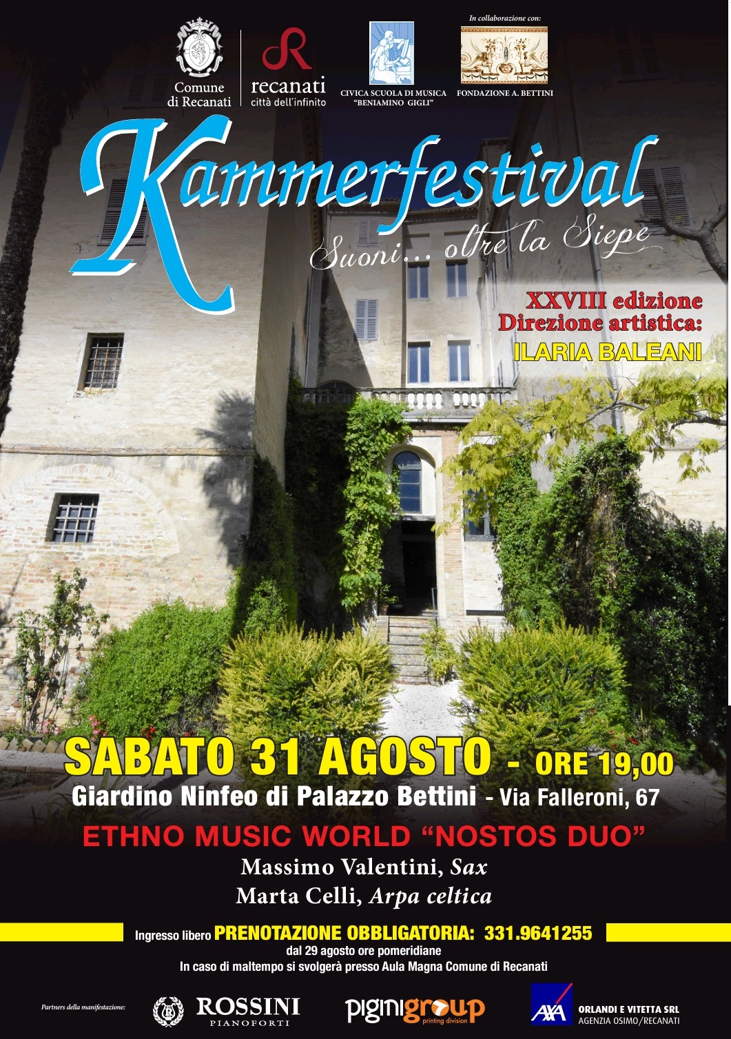 Kammerfestival è organizzato dalla Civica Scuola di Musica “B.Gigli” e Comune di Recanati Assessorato alla Cultura in collaborazione con Fondazione “A. Bettini”.
