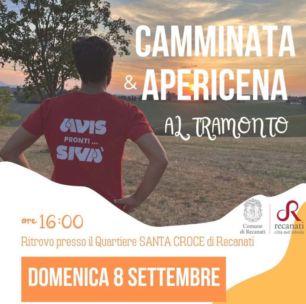 Domenica 8 settembre si avvicina e con essa la Camminata Avis, un evento promosso dall’Associazione Volontari Italiani Sangue che si terrà nel quartiere di Santa Croce a Recanati. Una passeggiata di 8 km sulle dolci colline recanatesi, con il panorama che si apre dai Sibillini al Conero. I colori del tramonto faranno da cornice creando un’atmosfera magica e unica. L’appuntamento è fissato per le ore 16:00 e il percorso è adatto a grandi e piccini. Sarà previsto anche un servizio di navette per chi avesse bisogno di supporto durante il percorso.