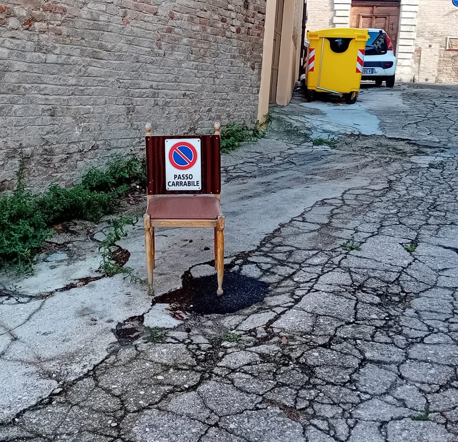 La trovata di un automobilista alla ricerca ogni volta di un parcheggio vicino casa, lo ha portato ad escogitare un espediente simpatico quanto poco rispettoso. Da alcuni giorni, quando prende la sua auto, mette al suo posto una sedia con appoggiato il segnale stradale di “passo carrabile”, per occupare il posto così che nessuno si azzardi a togliere la sedia per metterci la propria auto. Nessuno finora si è azzardato di contestare questa forma di prepotenza, né gli stessi agenti della polizia municipale.