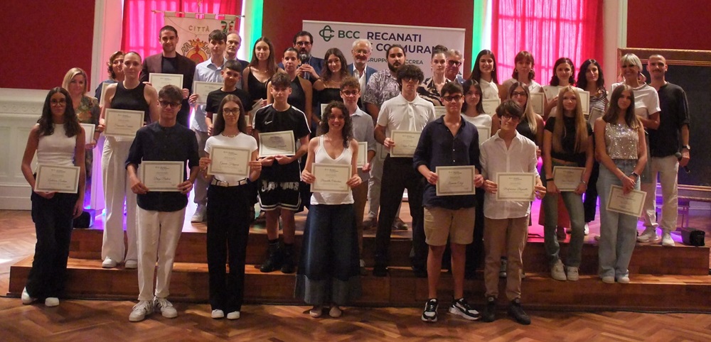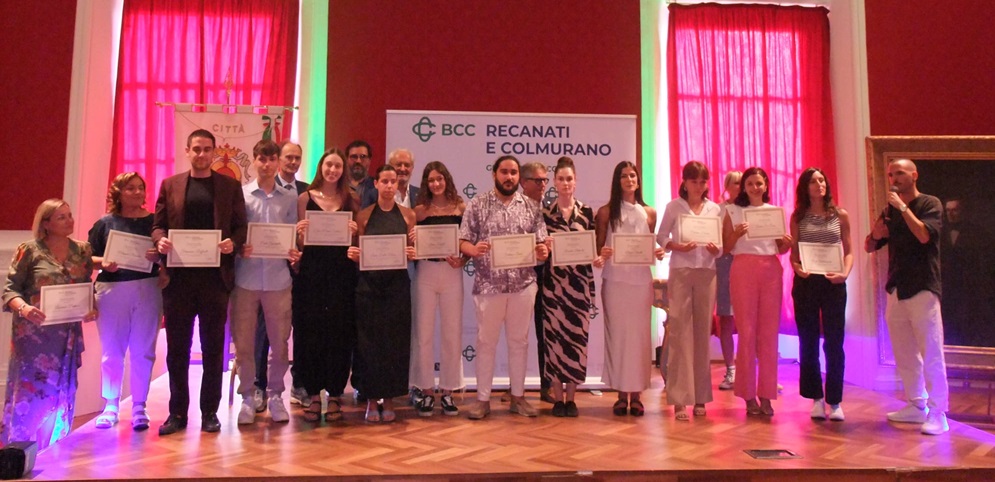 Cerimonia di consegna delle borse di studio agli studenti più meritevoli, organizzata, ogni anno, dalla Banca di Credito Cooperativo di Recanati e Colmurano. I premi erano riservati a tutti i soci e i figli dei soci dell’Istituto di Credito, che hanno ultimato in modo virtuoso il proprio percorso di studi ed hanno conseguito nell’anno 2024 la licenza di scuola secondaria di primo grado; il diploma di scuola superiore di secondo grado ed il diploma di laurea.