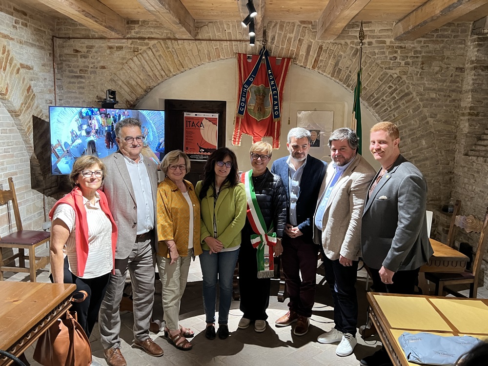 Durante l’incontro, è stato presentato un estratto dello spettacolo teatrale “ITACA” di Marco Bragaglia, messo in scena in piazza Bracaccini a Montefano il 6 settembre 2024, nell’ambito del progetto “Turismo alle Radici” promosso da Italea, dall’Unione Europea, dal Ministero degli Esteri, dal Ministero della Cultura e dal Comune di Montefano. ITACA racconta l’esodo della grande emigrazione italiana e marchigiana iniziato nel 1861, dopo l’unità d’Italia, e terminato negli anni venti del XX secolo. Marco Bragaglia, presente all’incontro, ha illustrato i criteri con cui ha ricercato materiali storici per costruire lo spettacolo, ricevendo apprezzamenti e note di commozione da parte della delegazione.