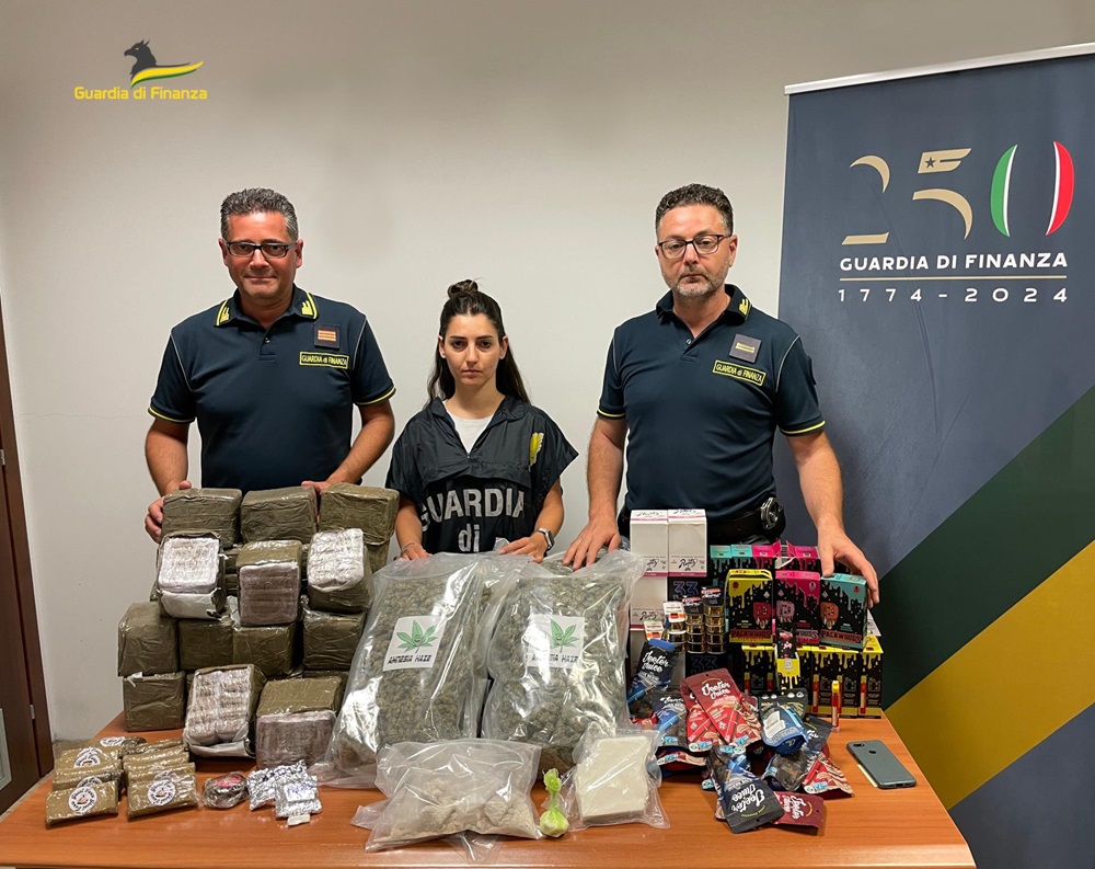 Il controllo economico del territorio è stato assicurato con l’utilizzo di n. 127 pattuglie e ciò è stato anche possibile grazie al rinforzo di 5 unità di personale assegnate nell’ambito del piano per il potenziamento dei servizi di vigilanza estiva. L’intensificazione dei servizi di pattuglia ha consentito altresì di sequestrare oltre Kg. 40 di sostanze psicotrope (hashish, marijuana, cocaina e droghe sintetiche), con 5 persone arrestate, 11 denunciati a piede libero alle competenti Autorità Giudiziarie e 23 assuntori, sorpresi con modica quantità, segnalati alla locale Prefettura.