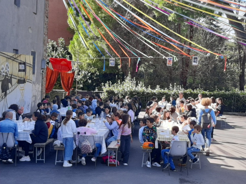E’ l’ora della merenda. Frittelle e zeppole calde, preparate con la solita e sempre sorprendente generosità, da oltre trenta generosissime mamme, nonne e babbi, fanno gioire i ragazzi e i tanti che si affacciano al pincetto per un saluto e se ne vanno con un dolce da portare a casa. I canti e i balli continuano; i trucca bimbi, i pop corn e giochi vari accompagnano le famiglie fino al tramonto.