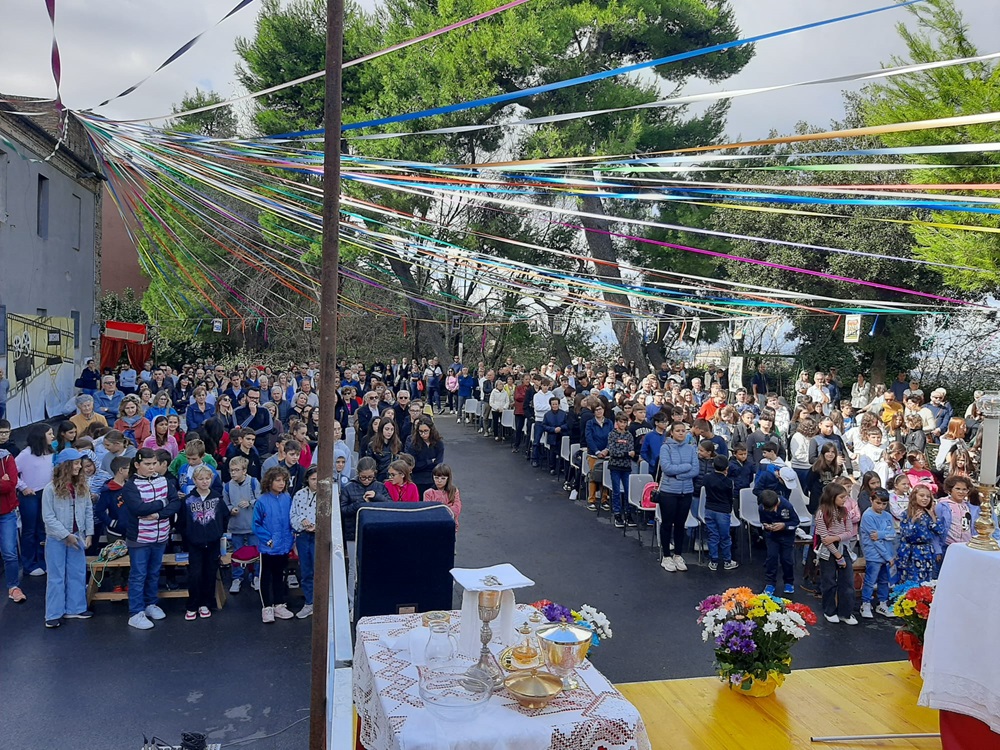 29 settembre, una domenica piena di sorprese e di gioia per la parrocchia San Francesco. Al mattino 30 educatori con impermeabili e ombrelli preparano la scenografia. Piano piano il sole comincia a farsi strada tra le nuvole scure. Si decide di celebrare la Messa al Pincetto.