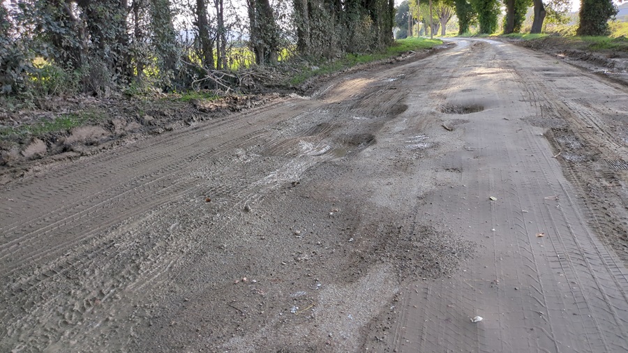 “Oggi faccio fatica addirittura ad arrivare a casa per il manto stradale veramente scadente e pericoloso e le condizioni della strada aggravate dalle ultime piogge in quanto alle buche si è aggiunto una quantità di fango importante che nessuno si accinge a pulire”.