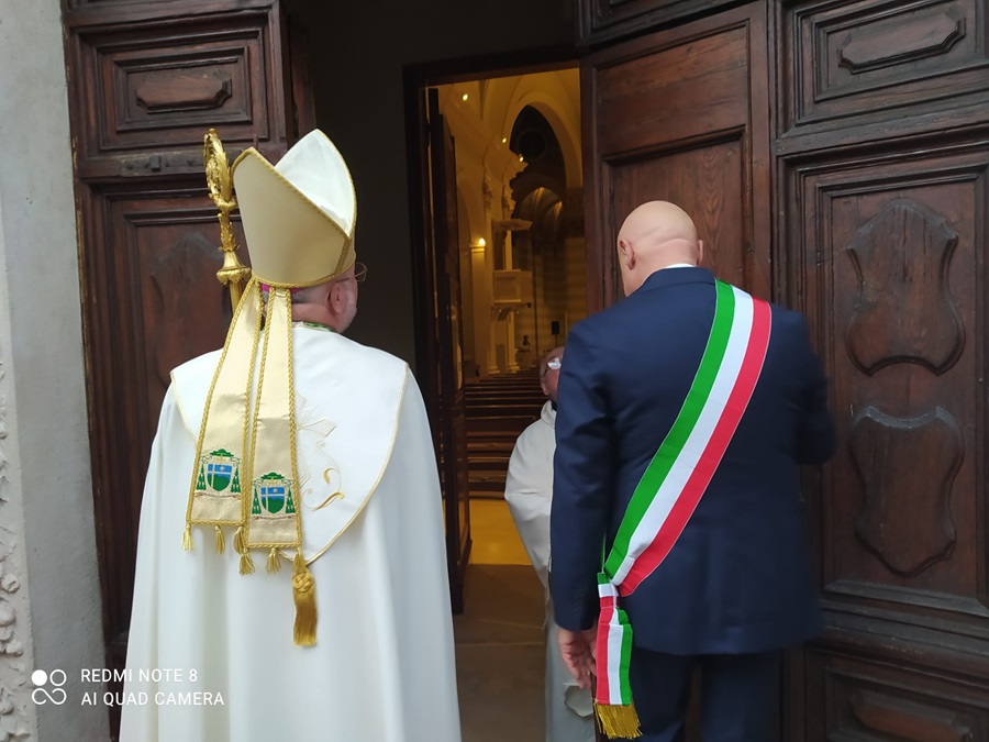 Il Vescovo ha benedetto il portone della chiesa di San Domenico che torna al culto