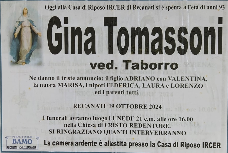 Home » E’ morta Gina Tomassoni ved. Taborro