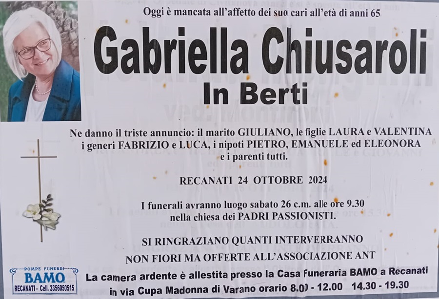 E’ morta Gabriella Chiusaroli in Berti