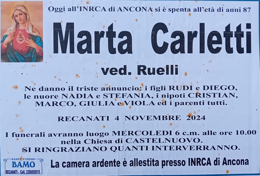 E’ morta Marta Carletti ved. Ruelli