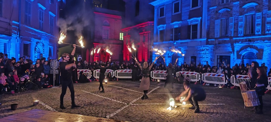 La magica notte del 31 ottobre, l’Associazione Culturale La Rondinella ha organizzato in collaborazione con il Comune di Montefano l’ormai consueto Halloween Infernale, giunto alla quarta edizione con una crescita costante di partecipazione. Quest’anno, il titolo dello spettacolo è stato “La Profezia di Mazzamurello”. L’evento ha avuto inizio al Teatro La Rondinella e si è snodato per i vicoli del paese, passando per piazza Papa Marcello, il Circolo The Egg, i Giardini da Bora, per concludersi in piazza Bracaccini con uno spettacolo di luce e fuoco.