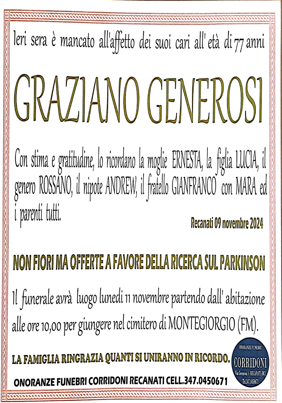 Si è spento Graziano Generosi