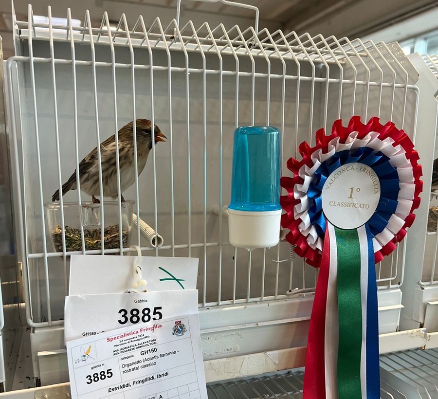 Pochi giorni prima, il 2 e 3 novembre, Davide ha partecipato alla 34ª edizione di Fringillia + Ibridia Valconca, una delle manifestazioni più prestigiose per fringillidi e loro ibridi in Italia. Qui, ha ottenuto risultati straordinari, conquistando il 1º, 2º, 3º e 4º posto con la specie “Organetto Rostrata”. Queste vittorie sono un chiaro segno della sua dedizione e della sua abilità nell’allevamento di uccelli.