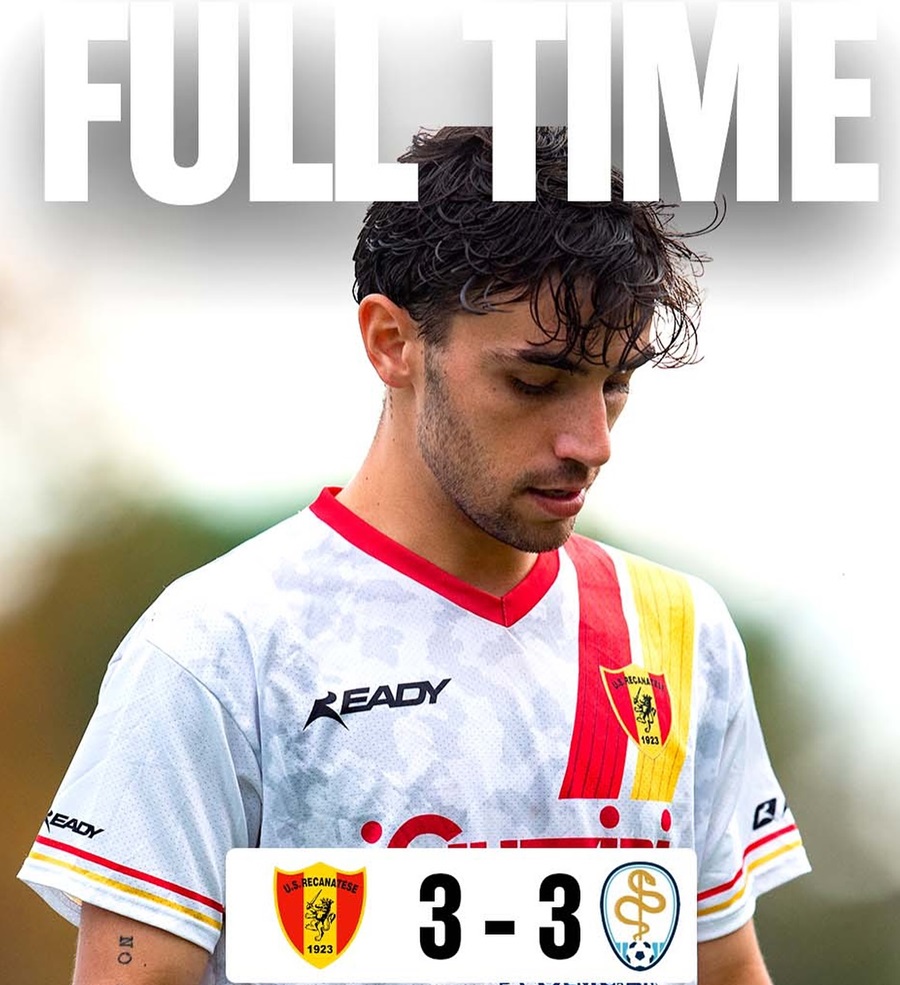 Un pareggio amarissimo per la Recanatese che avanti 3 a 1 al novantesimo si è fatta raggiungere sul 3 a 3 dall’Isernia. Al Tubaldi una vittoria sfumata in piena Zona Cesarini che avrebbe potuto regalare punti importantissimi per la classifica e sopratutto per il morale di una squadra a trazione under, anche alla luce dei tanti infortuni che stanno contrassegnando questa stagione, ultimo quello del difensore Bellusci che resterà fuori fino alla pausa natalizia così come il capitano Sbaffo. Onore e merito comunque all’Isernia che non è nuova a certi tipi di imprese e brava a crederci fino al triplice fischio del direttore di gara.