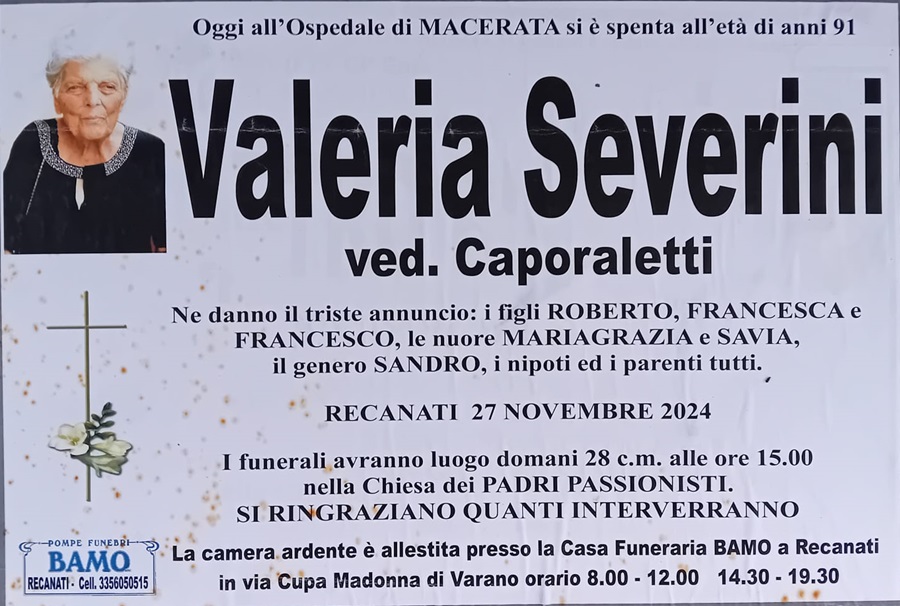 Home » E’ morta Valeria Severini ved. Caporaletti
