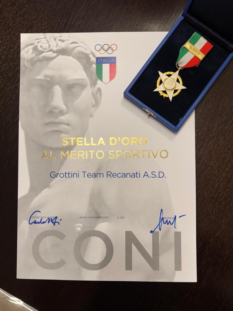 Venerdì sera abbiamo toccato il cielo. La Grottini Team Recanati ASD è stata insignita della Stella d’Oro al Merito Sportivo, la più importante onorificenza del CONI.