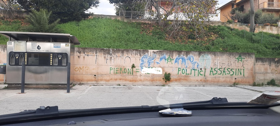 Gli autori o l’autore delle scritte avrebbero bisogno per il sindaco Pieroni di uno psicologo perché dimostrano di non stare molto bene .
