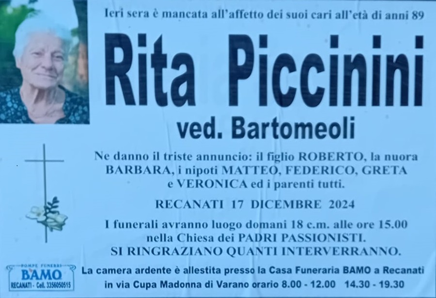 Home » E’ morta Rita Piccinini ved. Bartomeoli