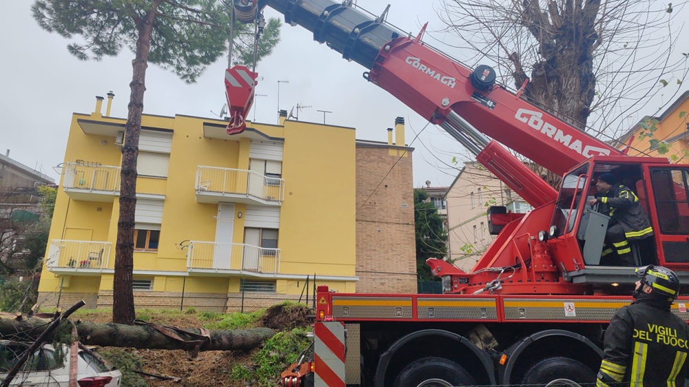 Brutta avventura per una recanatese a cui è caduto proprio sopra la sua auto un albero nei pressi della Rotonda Zandri, andando verso l’Itis.