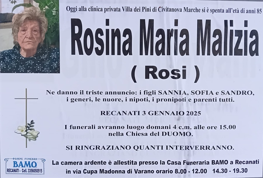 Home » E’ morta Rosina Maria (Rosi) Malizia