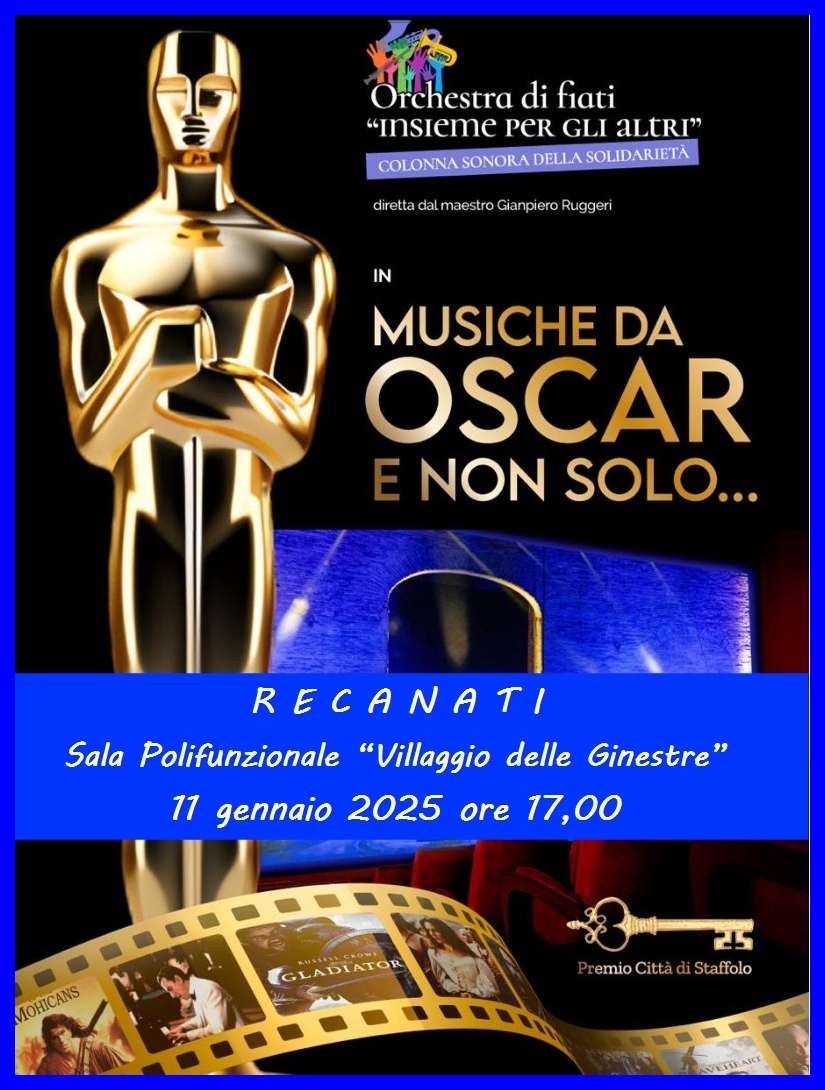 “Musica da oscar e non solo” è il titolo della serata in programma per Sabato 11 gennaio, alle 17, nella sala polifunzionale del Villaggio delle Ginestre di Recanati: protagonista l’orchestra dei fiati “Insieme per gli altri” diretta dal maestro Gianpiero Ruggeri. Un concerto che chiude in bellezza le festività natalizie per le ospiti e i familiari del Villaggio delle Ginestre, Centro di riabilitazione gestito dalle suore dell’opera San Luigi Guanella e diretto da suor Barbara Brunalli. Una serata all’insegna della festa e dell’accoglienza.