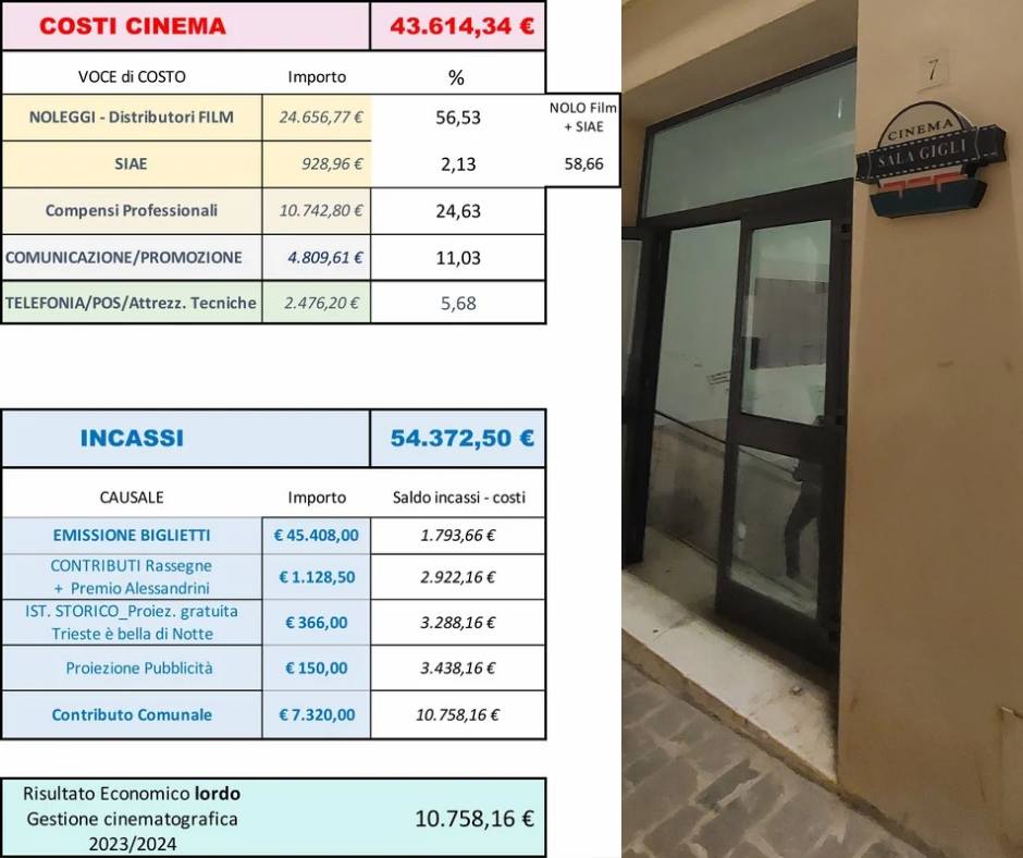 Noi, lo sapete, vogliamo più di tutti che un cinema in città ci sia, e saremo pronti a ‘rispondere alla chiamata se avrà termini accessibili. A tal proposito, teniamo fede alla promessa fatta in precedenza e mostriamo quali sono stati i risultati economici della “nostra” stagione cinematografica, tutte cifre ovviamente note anche all’amministrazione comunale.