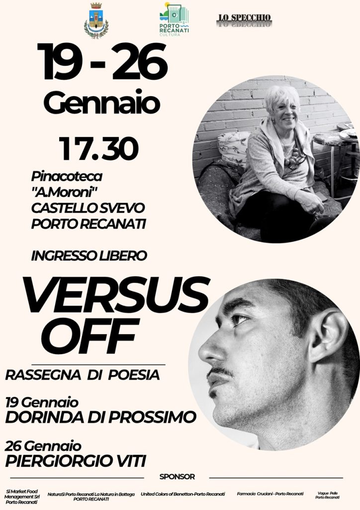 Versus off prende il via Domenica 19 gennaio e proseguirà domenica 26 gennaio alla pinacoteca Moroni di Porto Recanati con un appuntamento speciale che ospita nel territorio il meglio della poesia contemporanea.