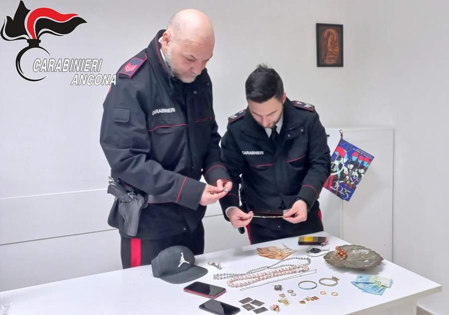 Durante un servizio volto a contrastare e reprimere il fenomeno delle truffe in danno di persone anziane, i militari, nella frazione Marcelli di Numana, hanno sottoposto a controllo un’auto utilitaria a noleggio. La perquisizione del veicolo ha consentito di trovare contanti e gioielli di cui il conducente non ha saputo giustificare la provenienza. Non erano, però, pervenute, alla Centrale Operativa della Compagnia di Osimo e degli altri reparti delle Marche, segnalazioni di truffe o furti accaduti nella mattinata. Partendo quindi da un nome di donna inciso all’interno di una fede nuziale rinvenuta nell’auto, in breve tempo i Carabinieri hanno individuato la vittima, una pensionata di 84 anni di Numana, che, effettivamente, ha confermato di aver subito una truffa, all’interno della propria abitazione. L’anziana signora, infatti, nella tarda mattinata, aveva ricevuto una chiamata sul telefono fisso, con cui un uomo, spacciandosi per suo nipote, le aveva preannunciato l’imminente arrivo di una persona, a cui la donna avrebbe dovuto consegnare tutto il contante disponibile, per il saldo di un computer, acquistato e mai pagato, al fine di evitare eventuali querele per il ragazzo. Dopo circa mezz’ora, si era presentato a casa della signora l’uomo, poi tratto in arresto, che, con artifizi e raggiri, l’aveva convinta a consegnargli 680 euro e gioielli in oro, del valore orientativo di 3.300 euro.