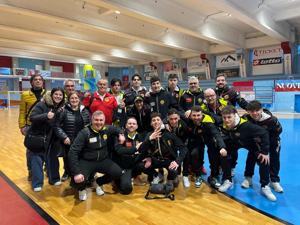 Grande prestazione per la Kappabi Futsal Potenza Picena che espugna il parquet di Rieti per 8-6 al termine di una sfida palpitante e ricca di colpi di scena. Una prova maiuscola per i ragazzi di mister Sapinho che colgono così la matematica salvezza con due turni d’anticipo, riuscendo a mettere in campo il cuore giallorosso che ha battuto sempre nel corso di tutta la stagione. Una grande soddisfazione per tutta la società giallorossa che ha sempre creduto in questa salvezza, ottenuta lottando fino all’ultimo con le unghie e con i denti.