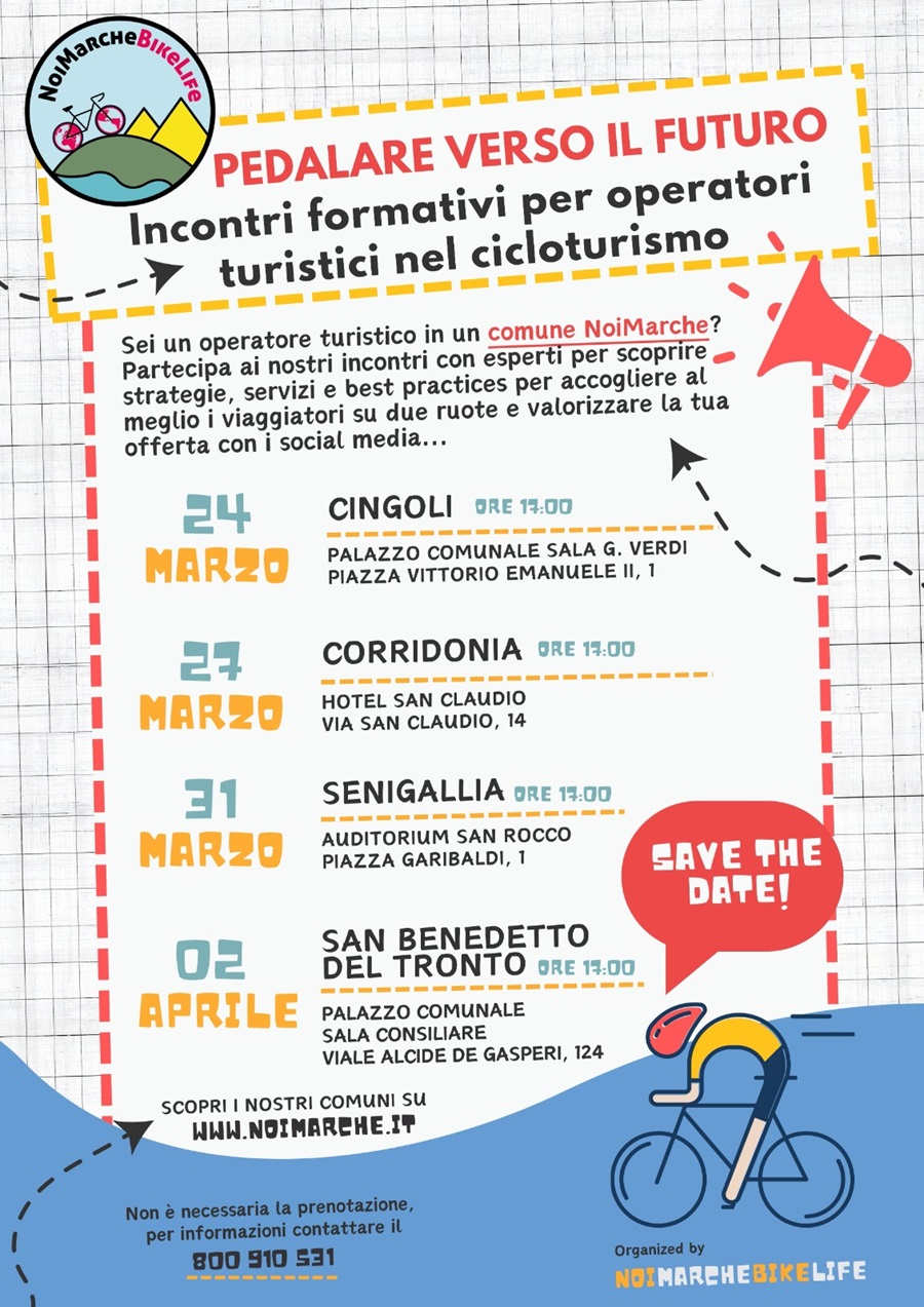 l’ Amministrazione del Comune di Montefano è lieta di invitarLa a partecipare al corso di formazione sull’accoglienza cicloturistica, organizzato da NoiMarcheBikeLife , di cui il nostro Comune è socio.