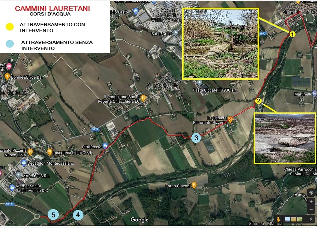 2. Negli attraversamenti dei corsi d’acqua non sono stati previsti dei ponticelli, ad oggi assenti ingiustificati.